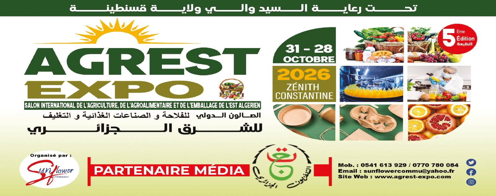 Agrest-Expo, qui a enregistré, dès son lancement, un intérêt particulier d’entreprises algériennes et étrangères ayant déjà confirmé leur présence en qualité d’exposants, promet d’être un événement annuel et incontournable pour l’ensemble des professionnels.